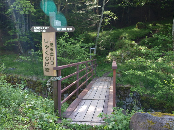 8:08 しゃくなげ橋を渡り登山道へ。