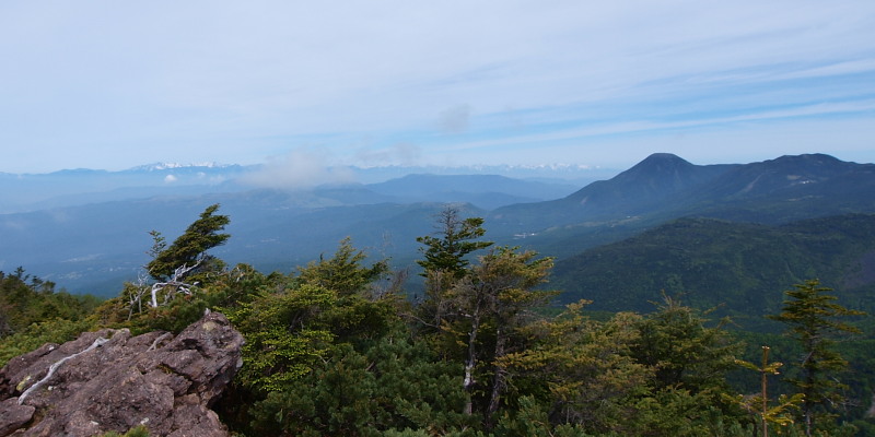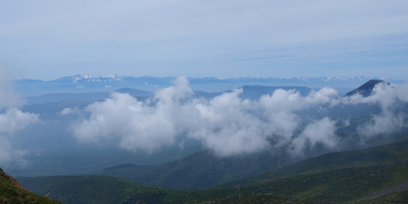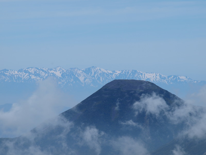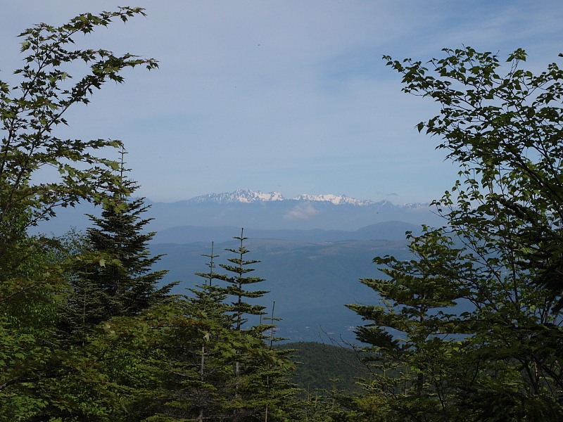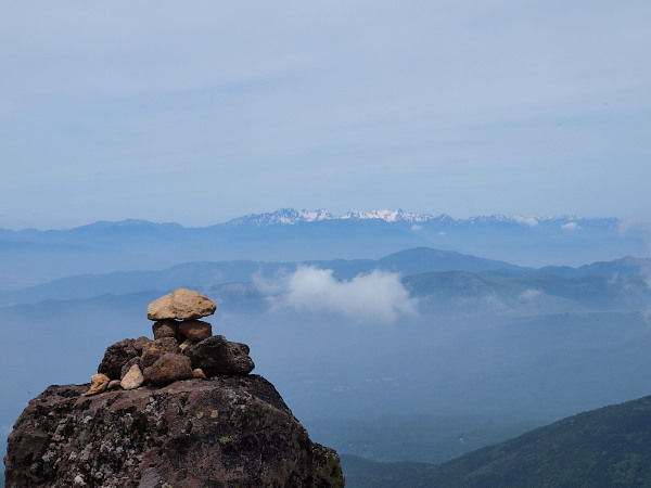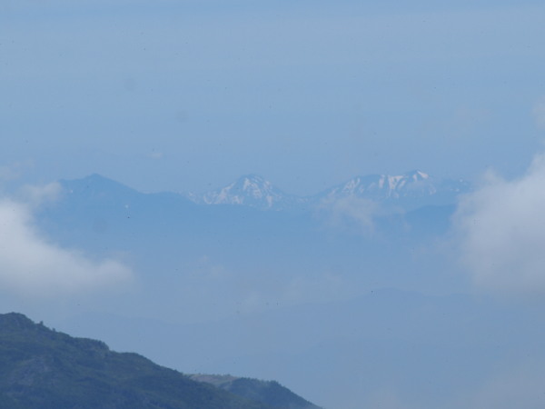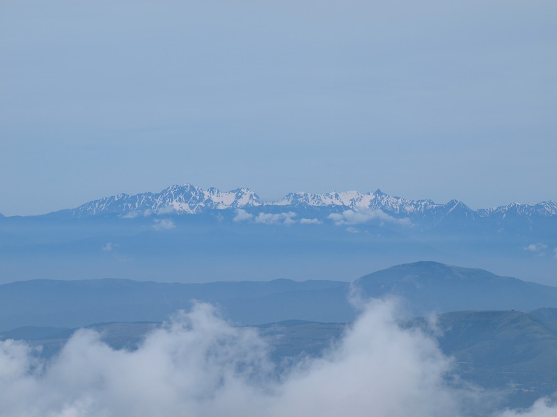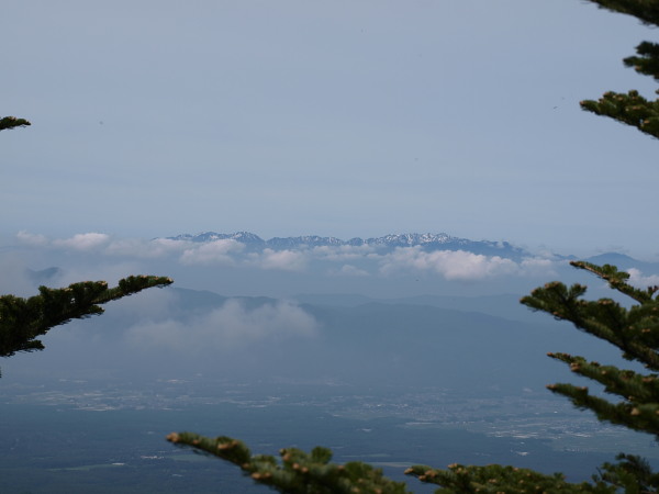 遠くに北アルプス。これが見たくて登ったんですよ!