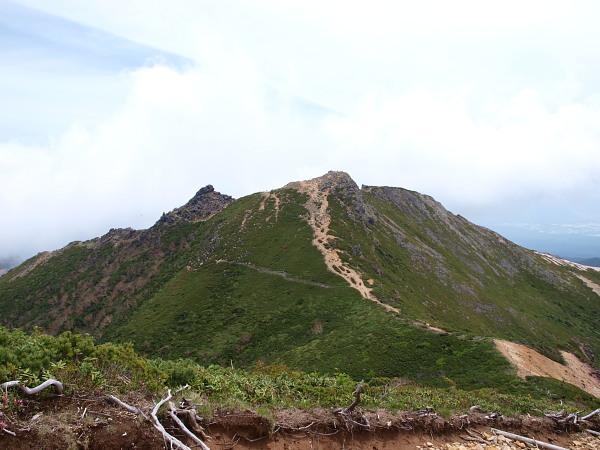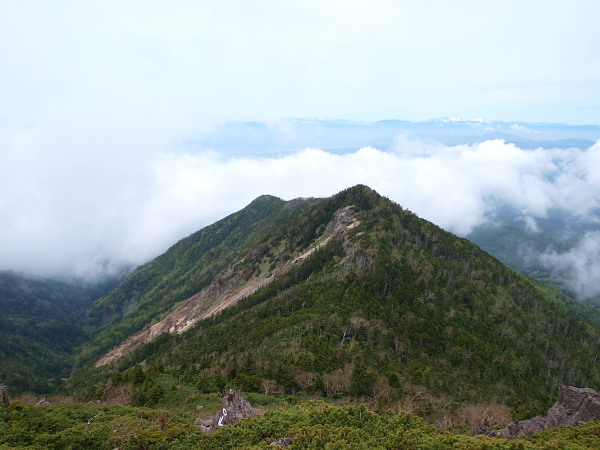 振り返ると登ってきた尾根が見えます。