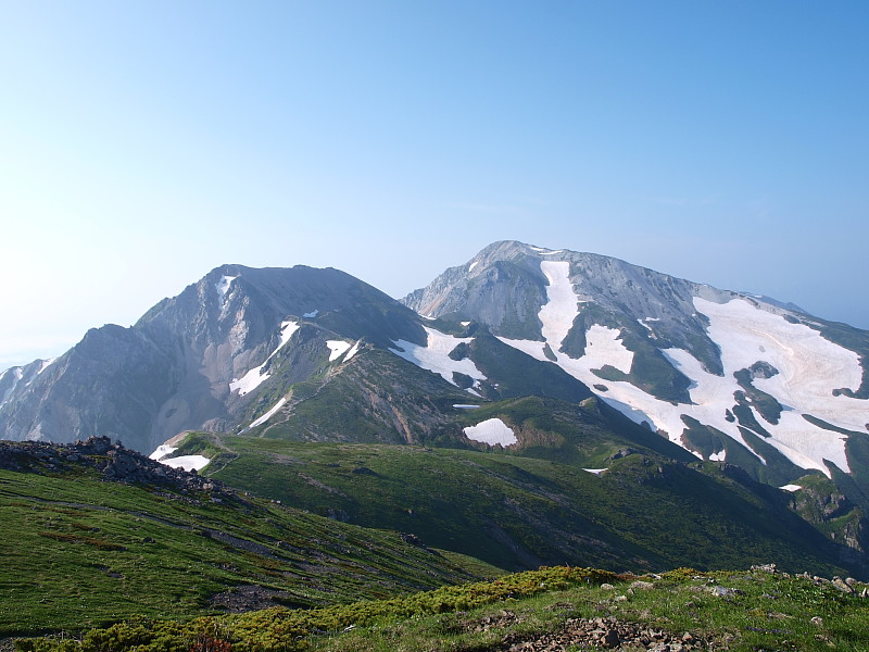 12:39 杓子岳と鑓ヶ岳。あそこまで足を伸ばしたかった・・・