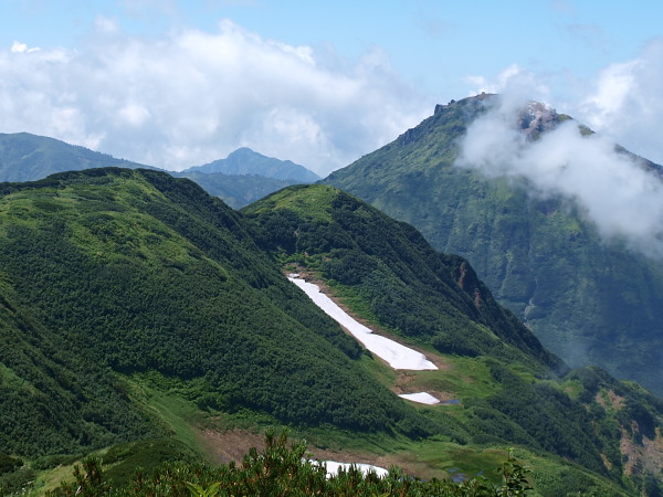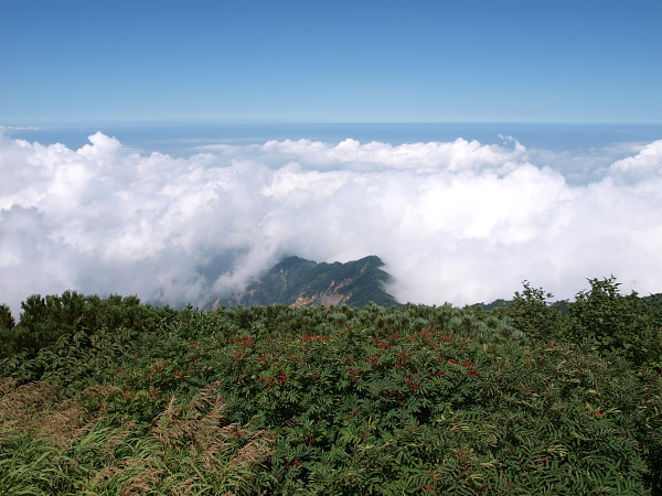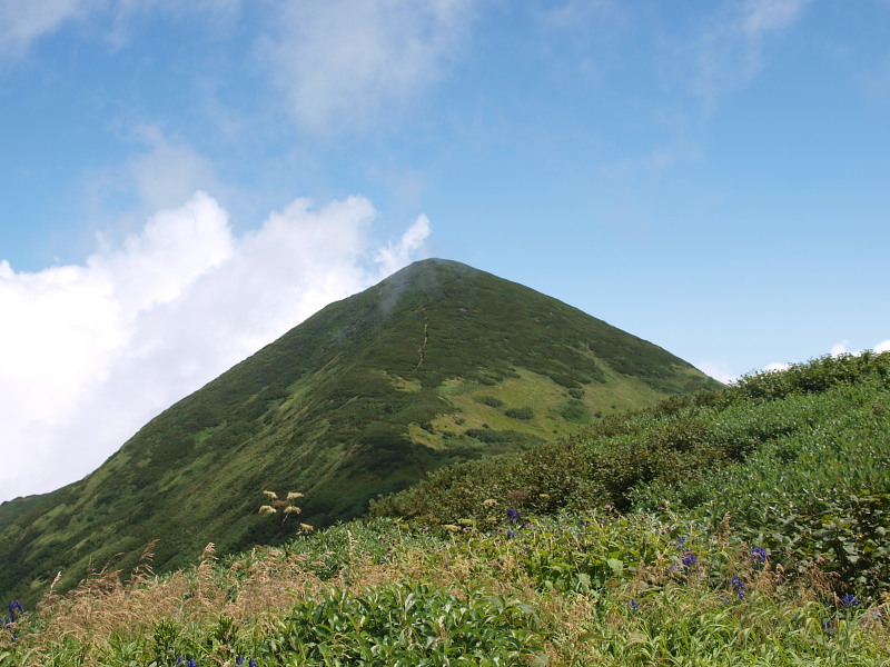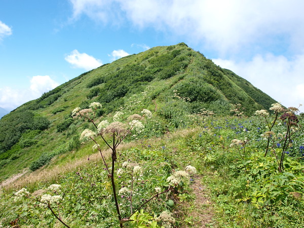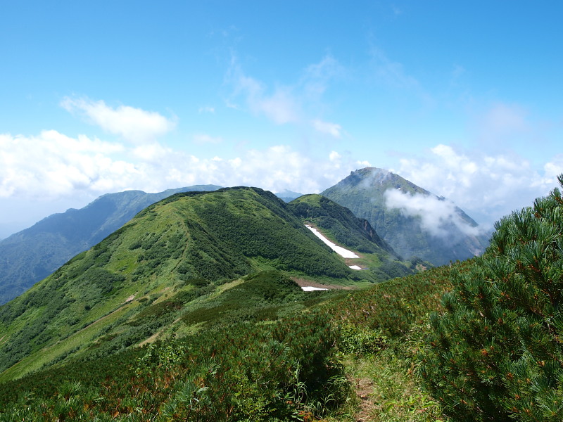 奥に雨飾山。焼山・金山経由で縦走できるんですよね。