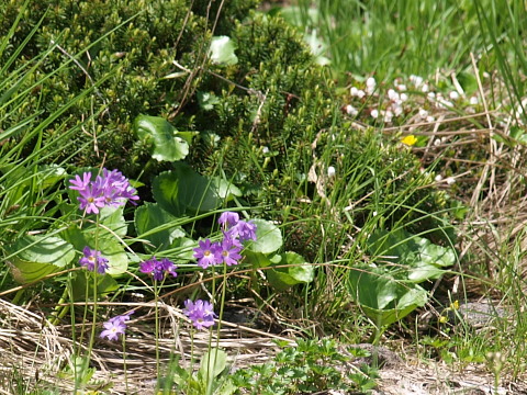 雪解けの遅かった場所にはコザクラやツガザクラが咲いていました。