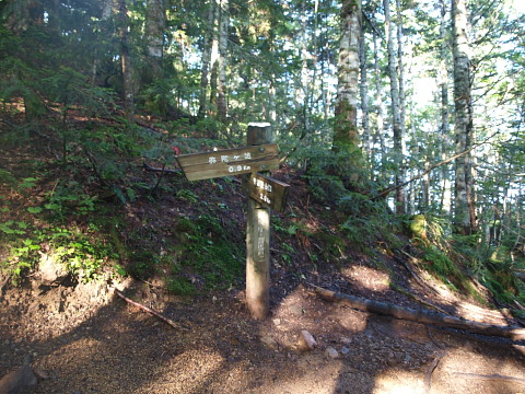6:13 標識に従い右へ。弥陀ヶ池まで2.7km。