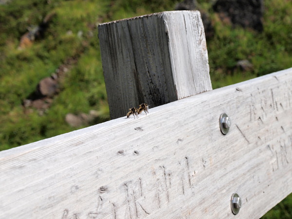 9:07 標識の上に2匹の虫が同じ姿勢で並んでいました。