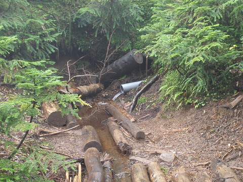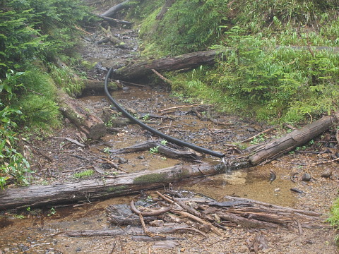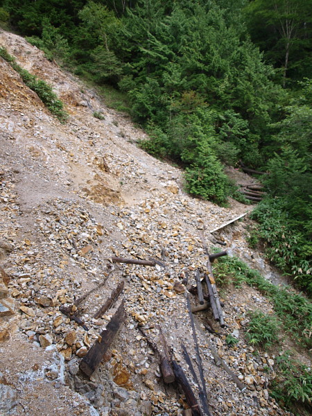 7:50 崩落箇所。ゲリラ豪雨が続いたら道が無くなりそうです。