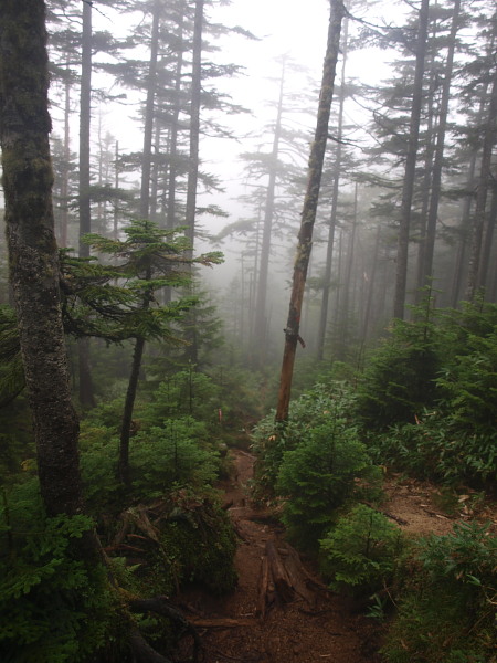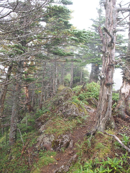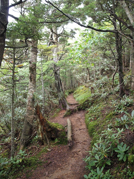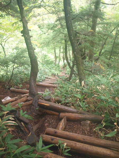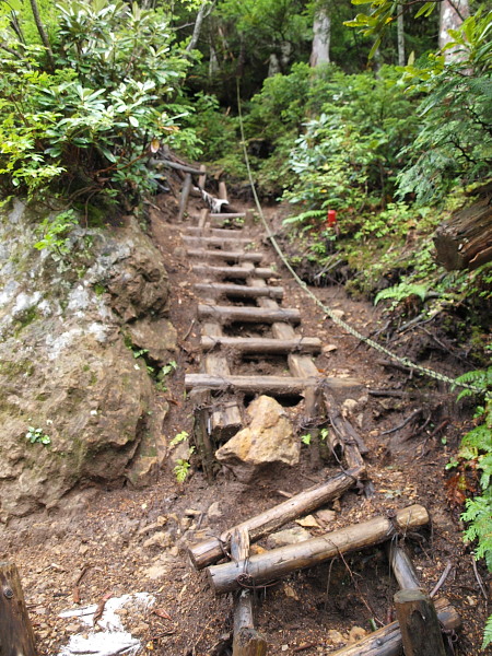 12:21 急な下り。雨で木も滑りやすいので慎重に下りました。