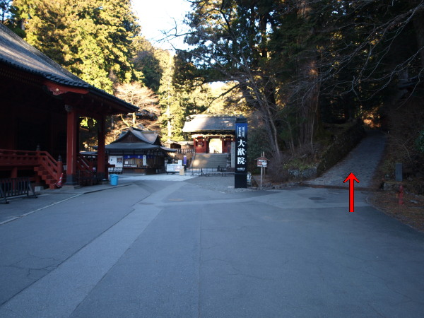8:09 大猷院手前を矢印の方向へ。標識はありません。