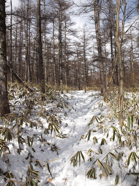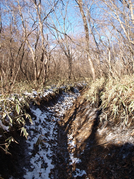笹の上を歩く方が楽でした。それでも時折ズホッといきます。
