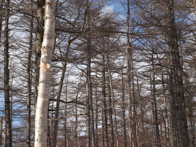 10:18 きれいな落葉松林です・・・じゃなくて鳥が写っていますよ。