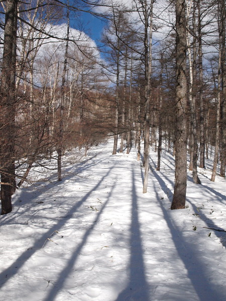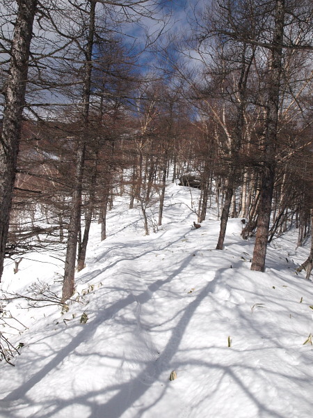 雪面が固い箇所もあり、こちらのトラバース道は怖気づいてPASS。