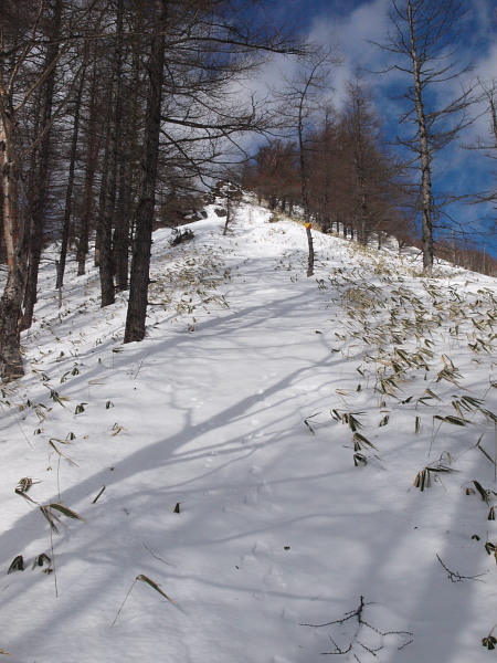 分岐の標識はありません。尾根をまっすぐ進みます。
