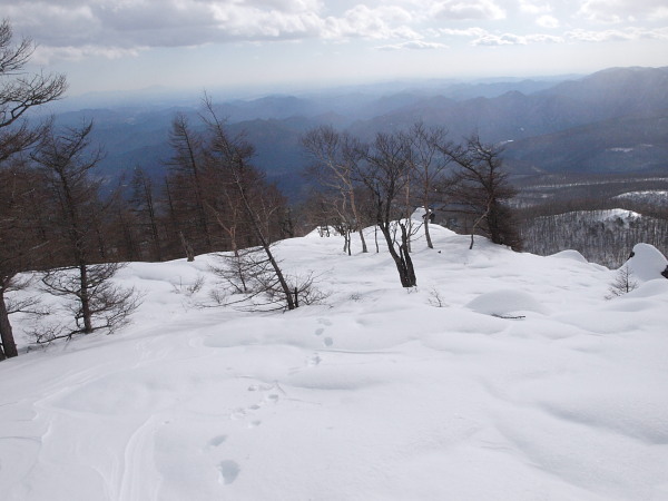 時折、薄っすらとスノーシューの跡や踏み跡が確認できました。