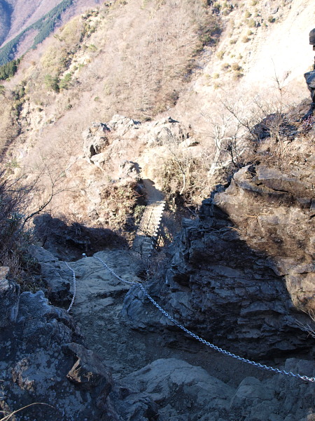 三ノ塔から烏尾山荘の間には鎖場があります。