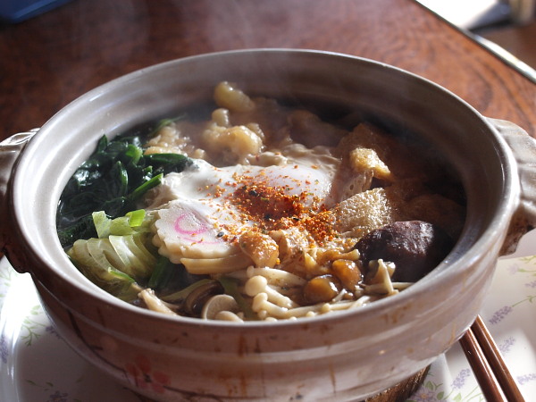 掘りごたつに入り、熱い鍋焼うどんを食べる!