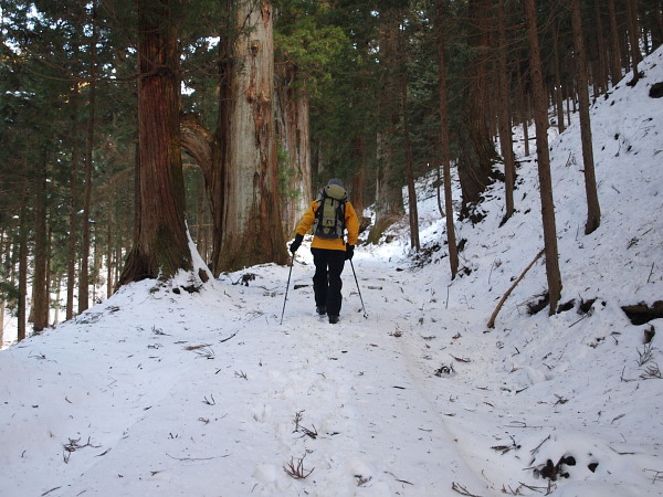 雪質が悪かったり、雪が無いと歩きづらい道?です。