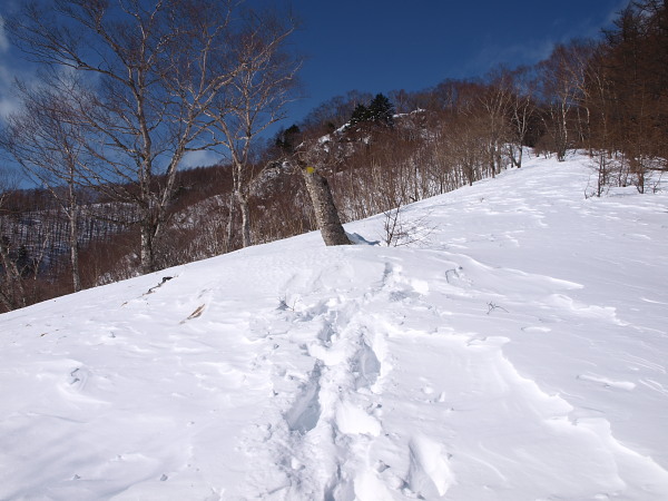 単独。先行者のトレースがあるものの黒岩まで登れず。