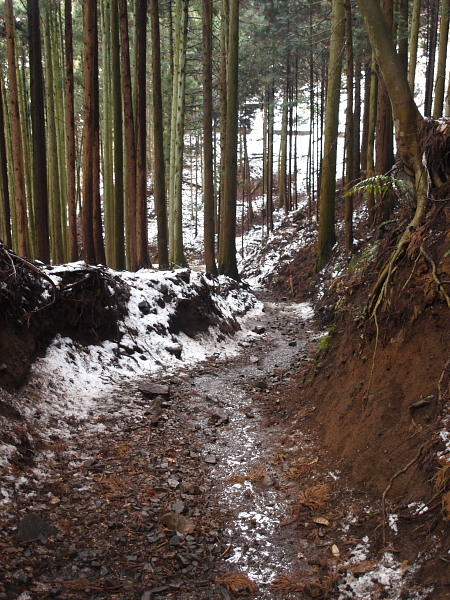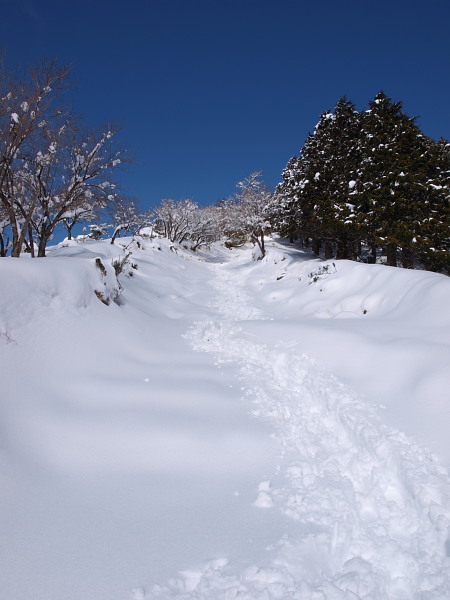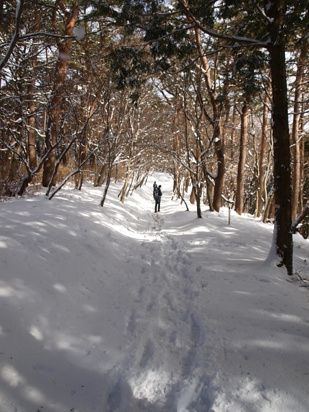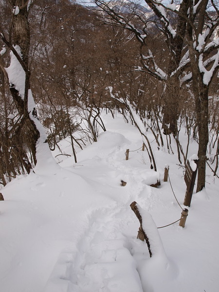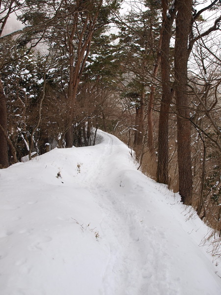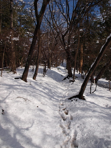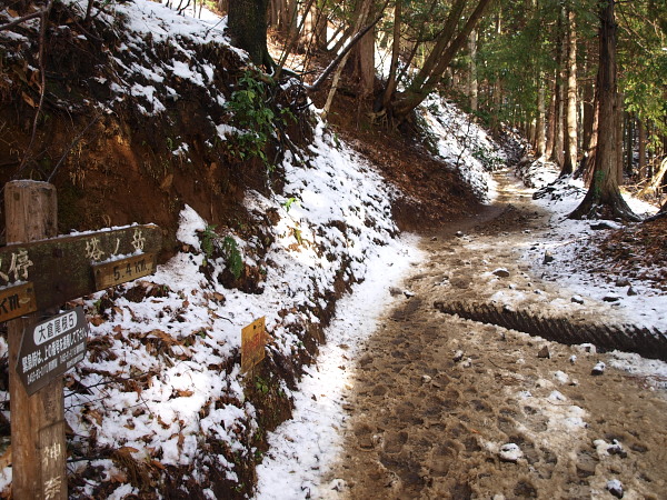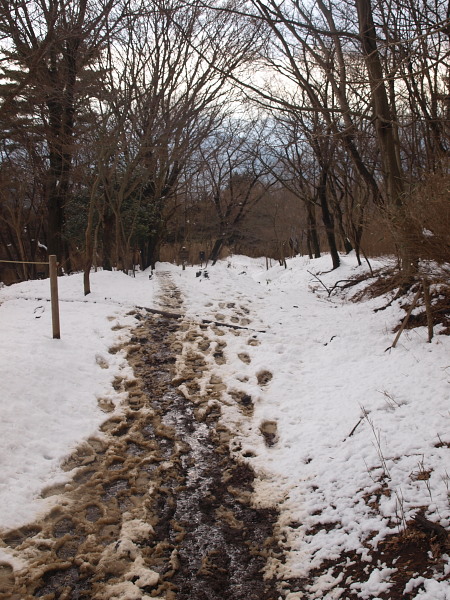 13:52 登りでグチャグチャだった道も、下りでは雪も無くなり快適な道でした。