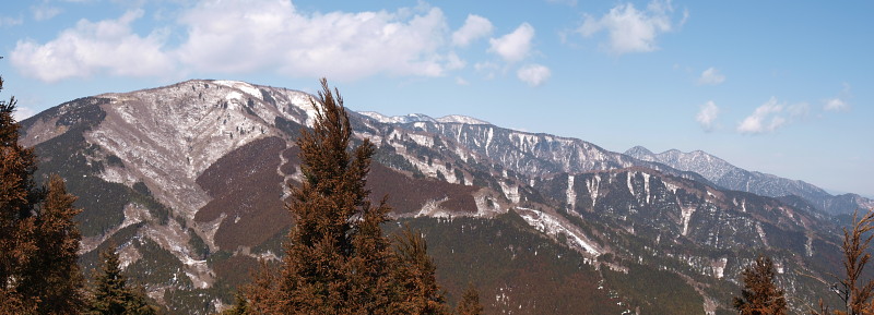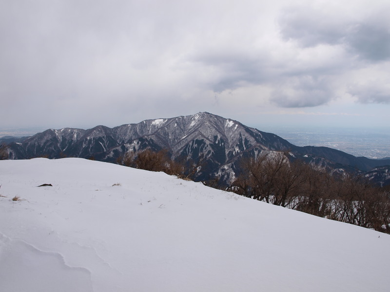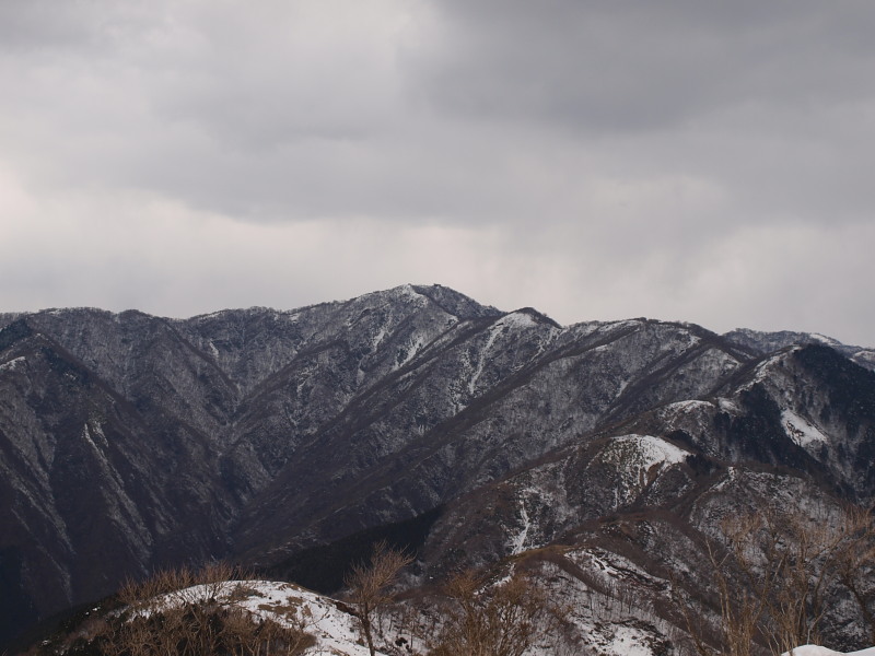 左のピークが三ノ塔、真ん中あたりが丹沢山、右に丹沢三峰