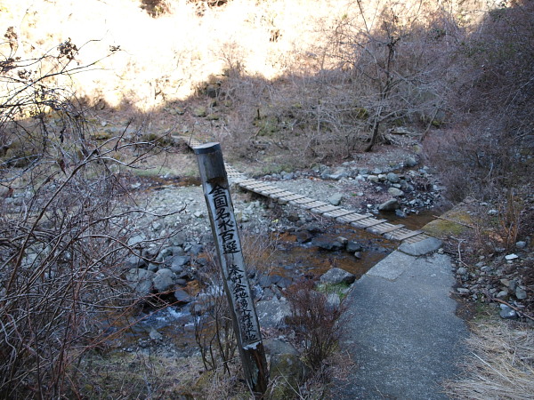 9:05 沢沿いの林道を進むと橋を渡り対岸へ。