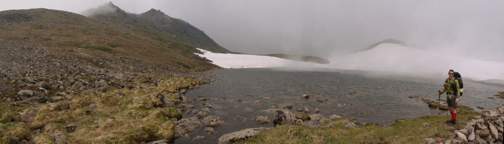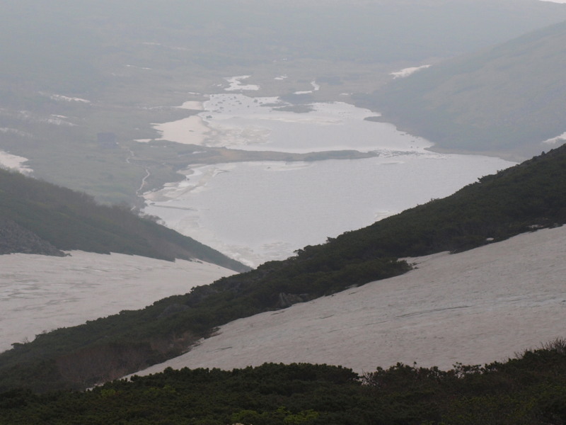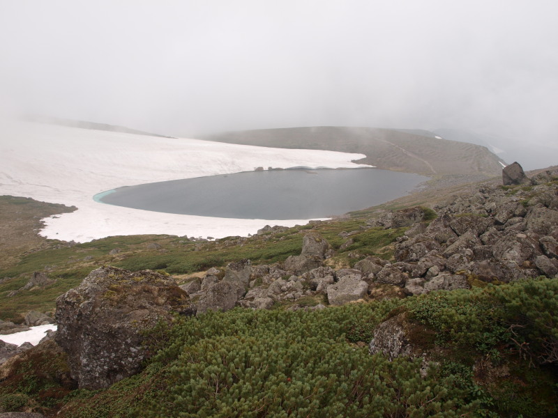 一気にガスが流れて沼の全貌が拝めました。トムラウシ山もね。