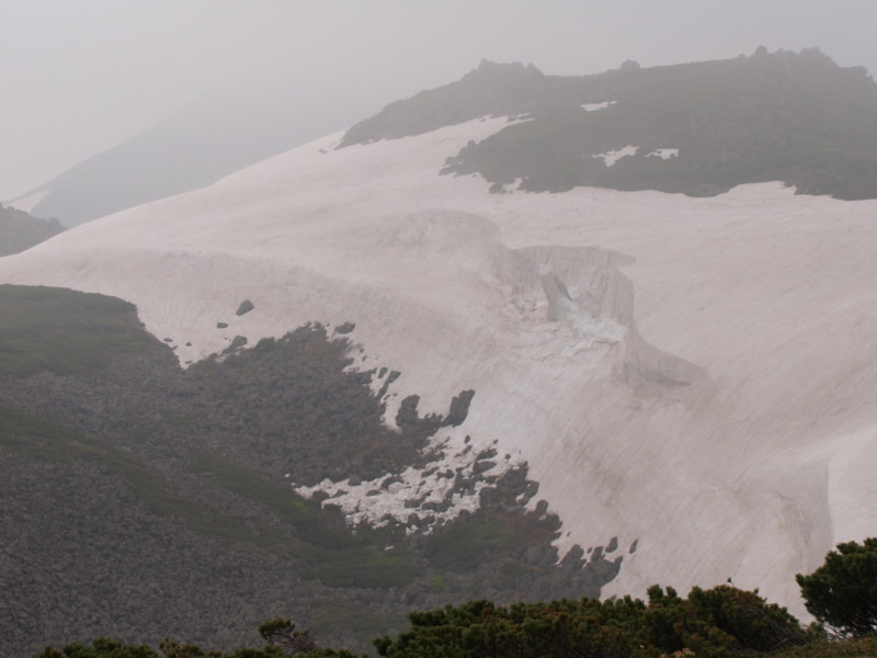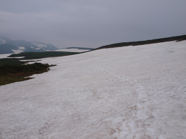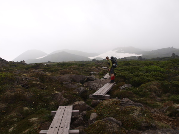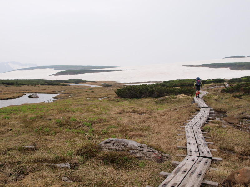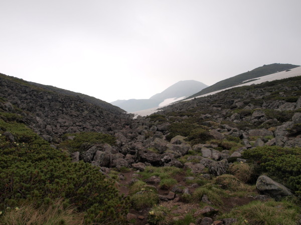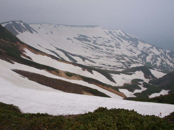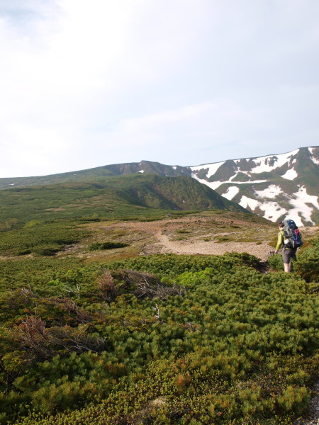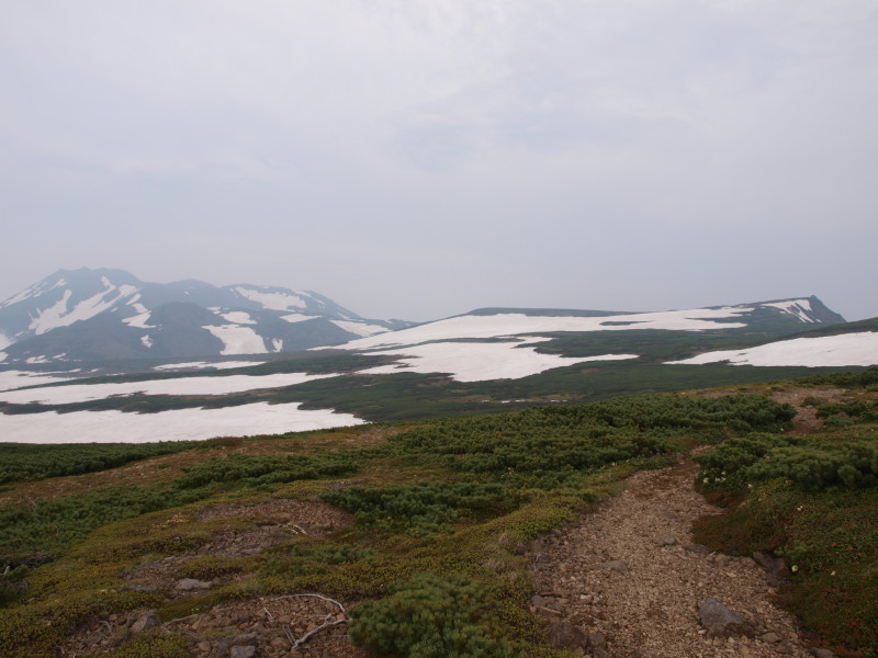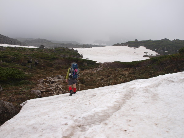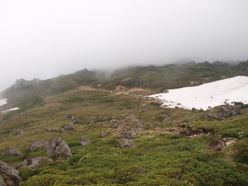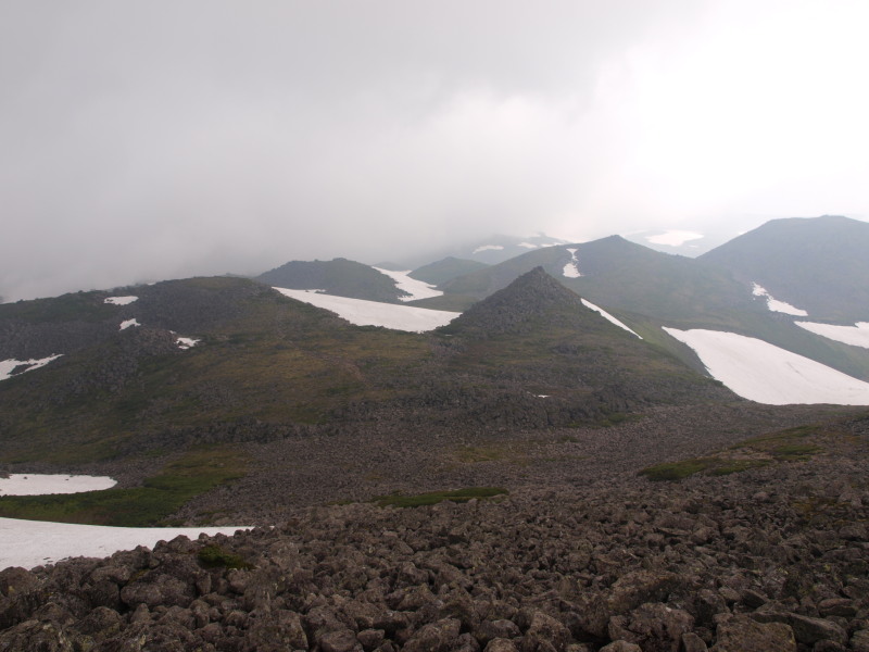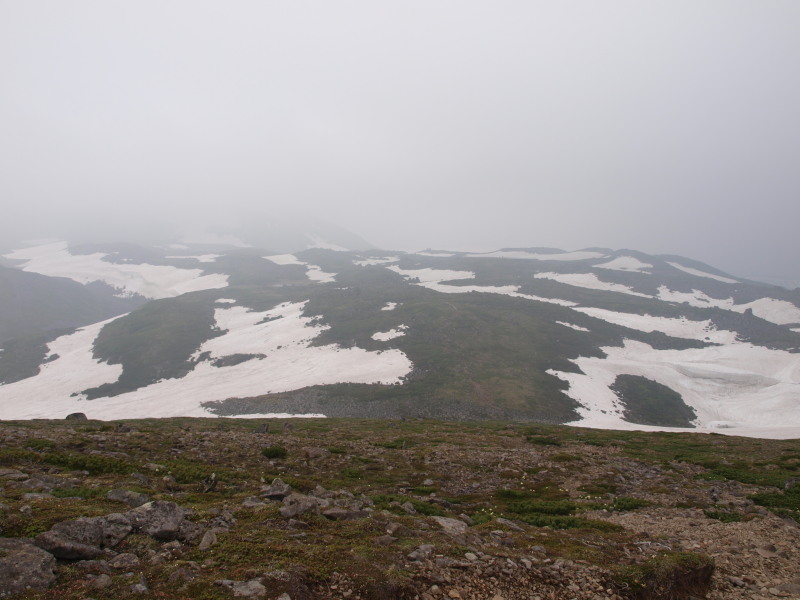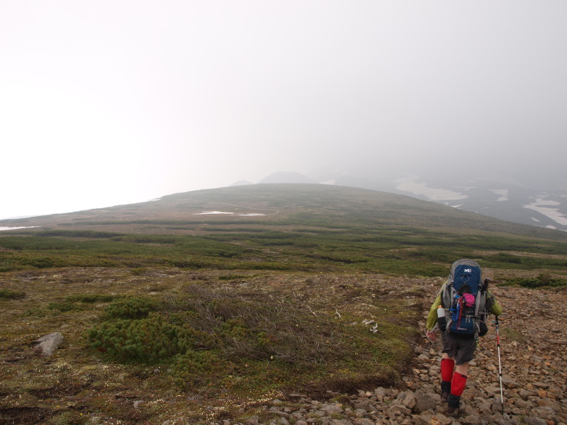 この時点ではトムラウシ山が見ていましたが、ガスも湧いてきて天気は悪くなっいます。
