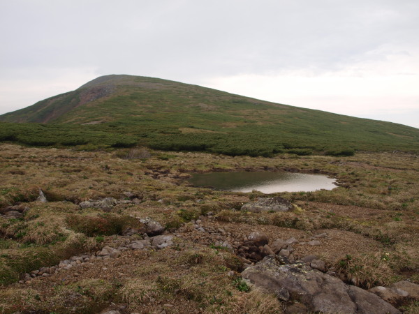 9:03 ヒサゴ沼避難小屋分岐(コル)近くの池。