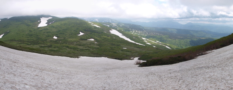 オプタテシケ山の雪渓取り付きから振り返ったところ。