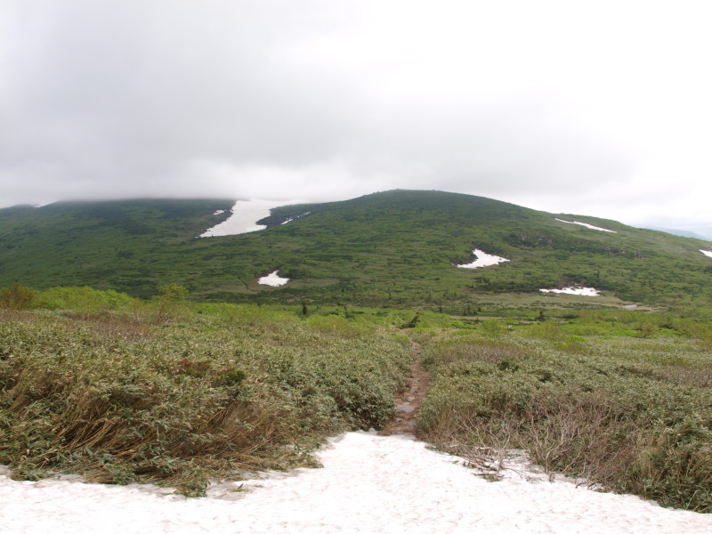 三川台に向かい左にはカール状地形が見えると期待していたのに・・・