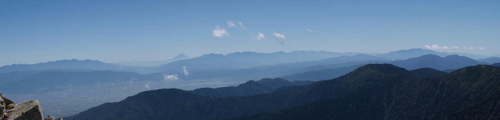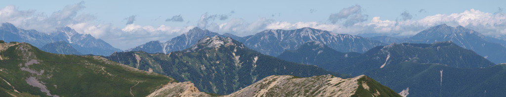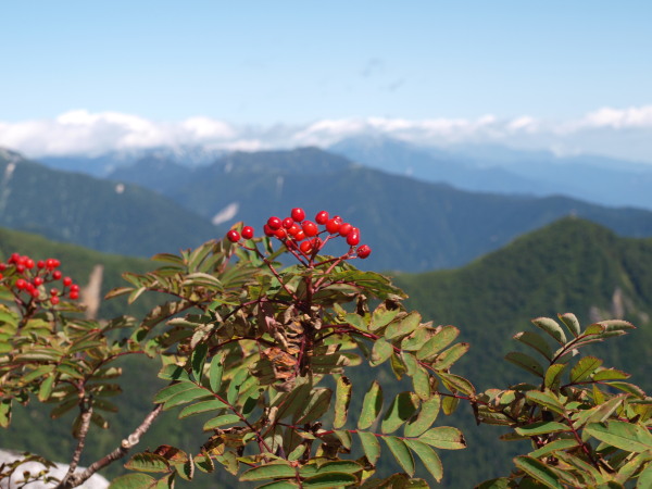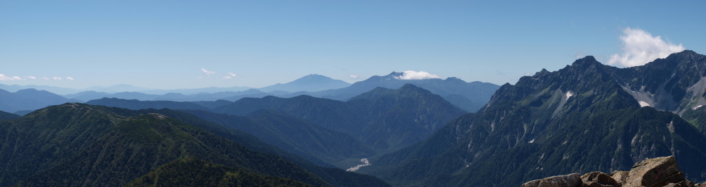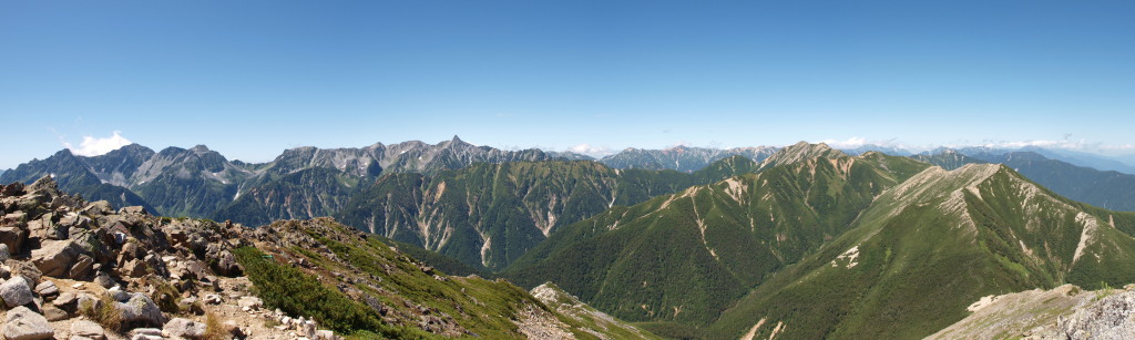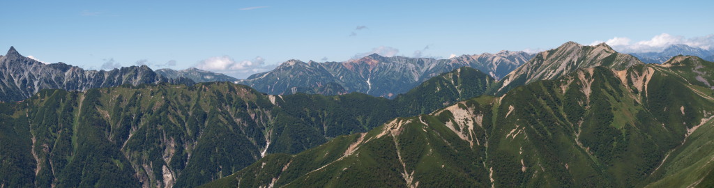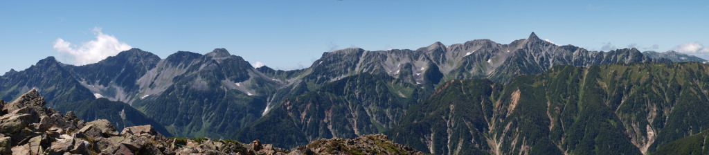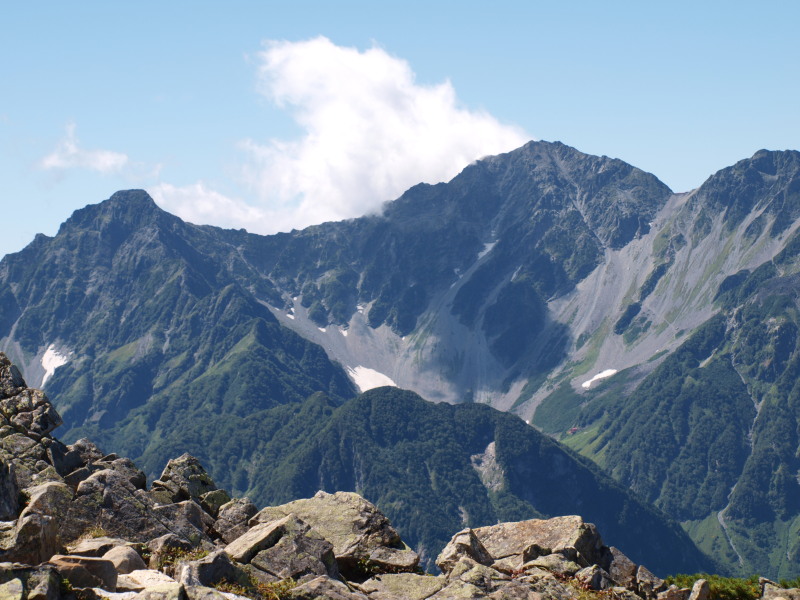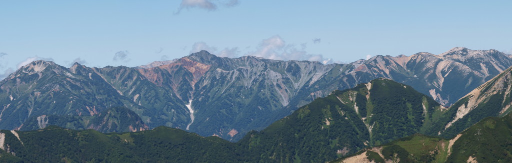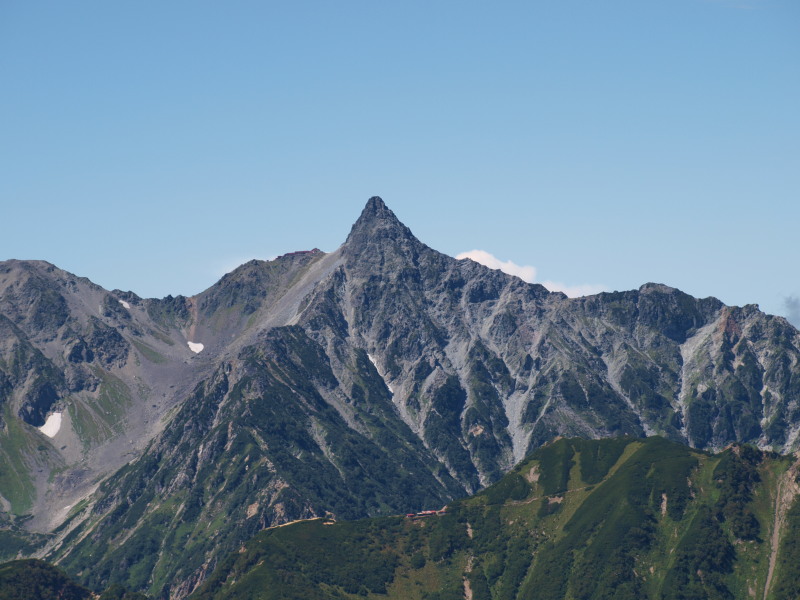 穂高岳周辺。涸沢小屋の赤い屋根が確認できました。