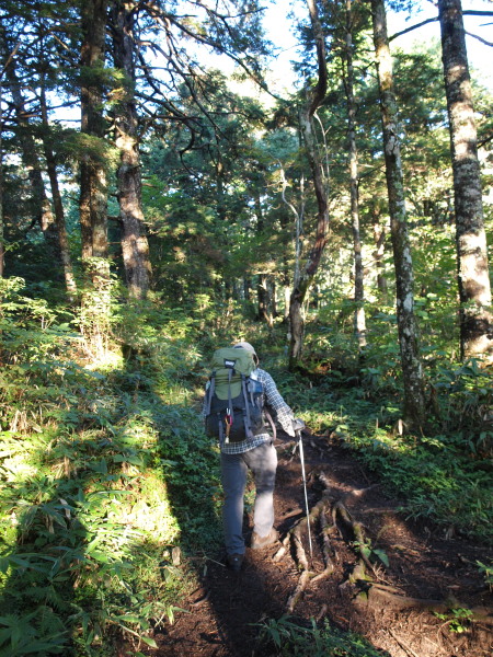 5:42 足の長いスマートな影!を撮影して、長い山歩きの始まりです。