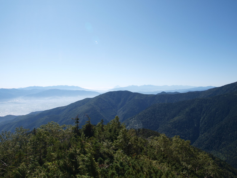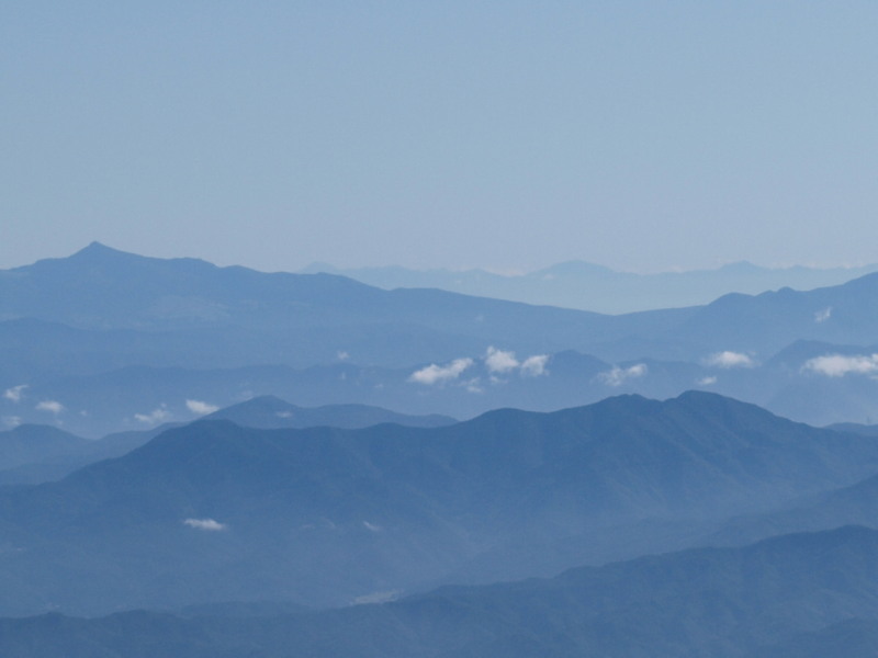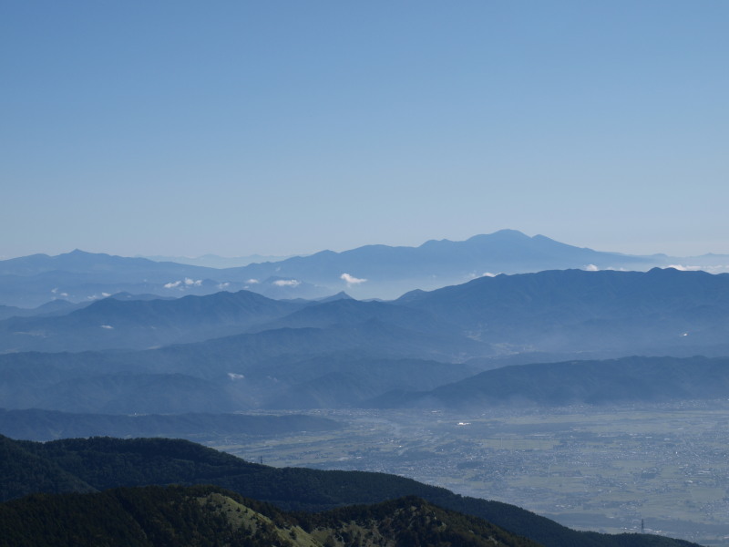 左のピーク四阿山の右側奥の山が日光白根山です。