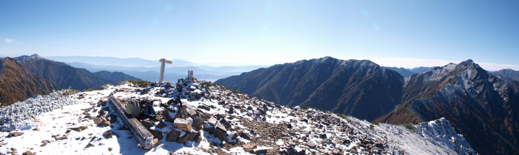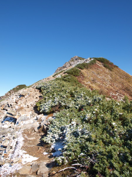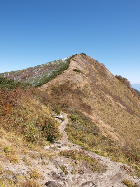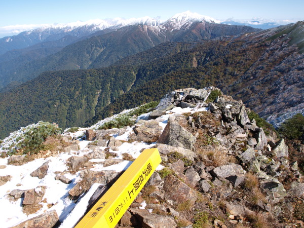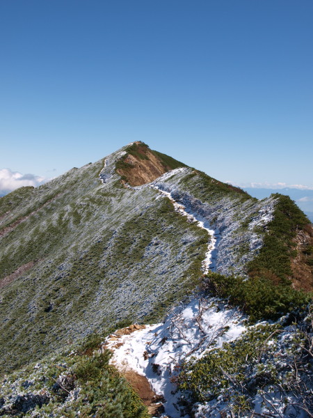 新越山荘から歩いてくると分岐があり直進するとピークです。
