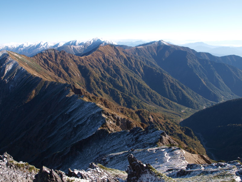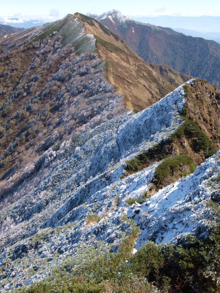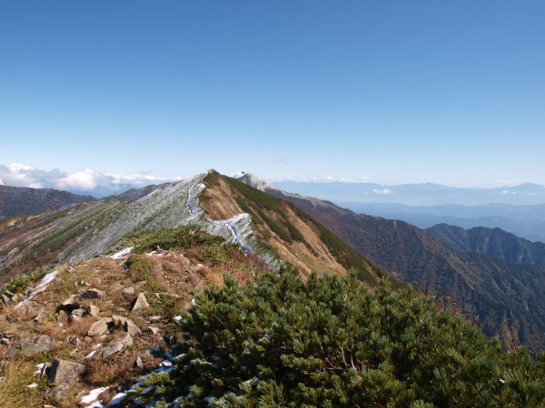 前方が岩小屋沢岳。