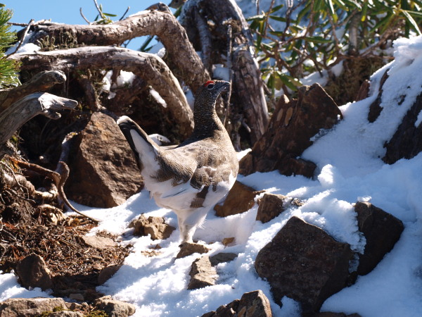 雷鳥はヒョイっと飛びますが、私は確実な足場を探すのに一苦労でした。