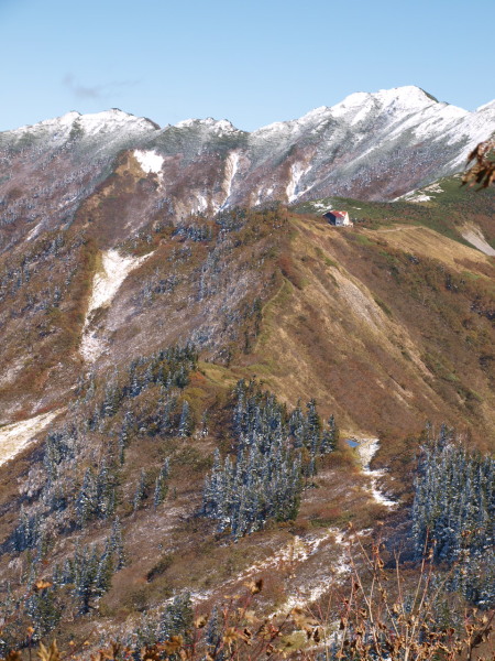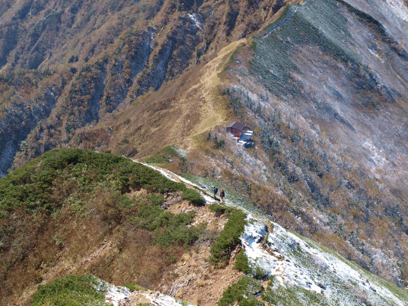 岩小屋沢岳から歩いてくるとトラバースしますが、