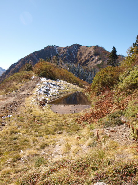 12:17 小さな池と岩小屋沢岳。
