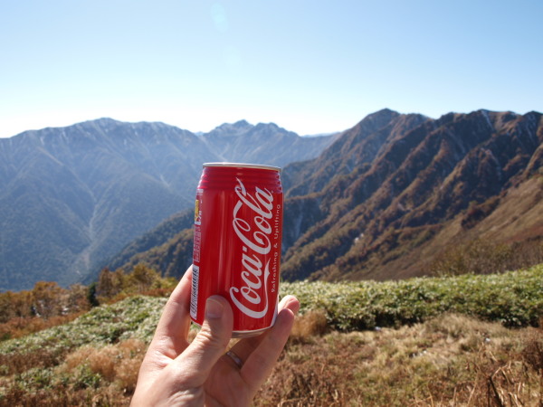 縦走路を眺めながらコカ・コーラを一気飲み!