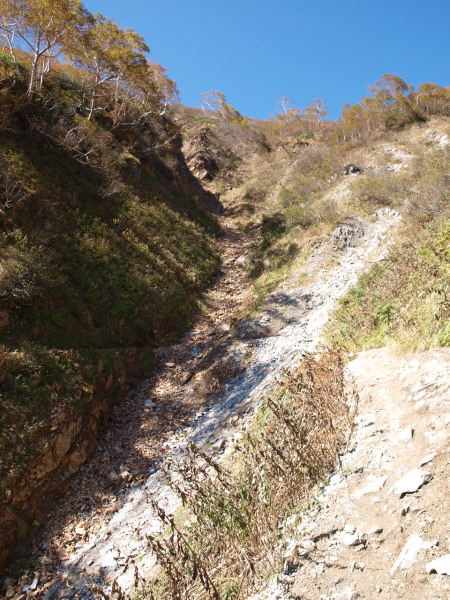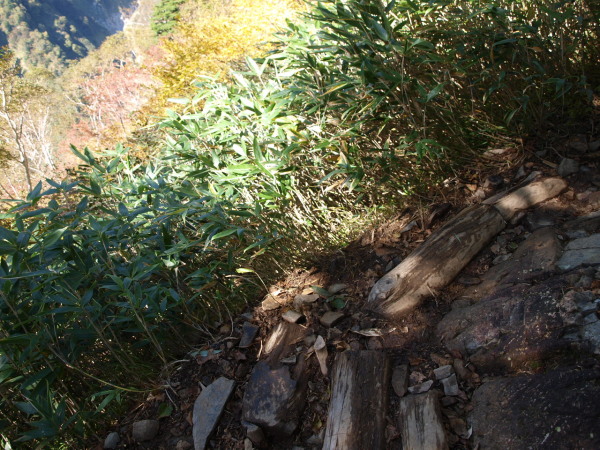 この木で足を滑らせ笹の生い茂る崖へ頭からダイブです。