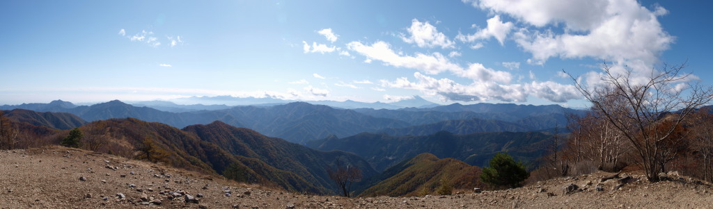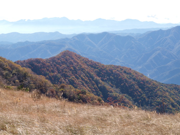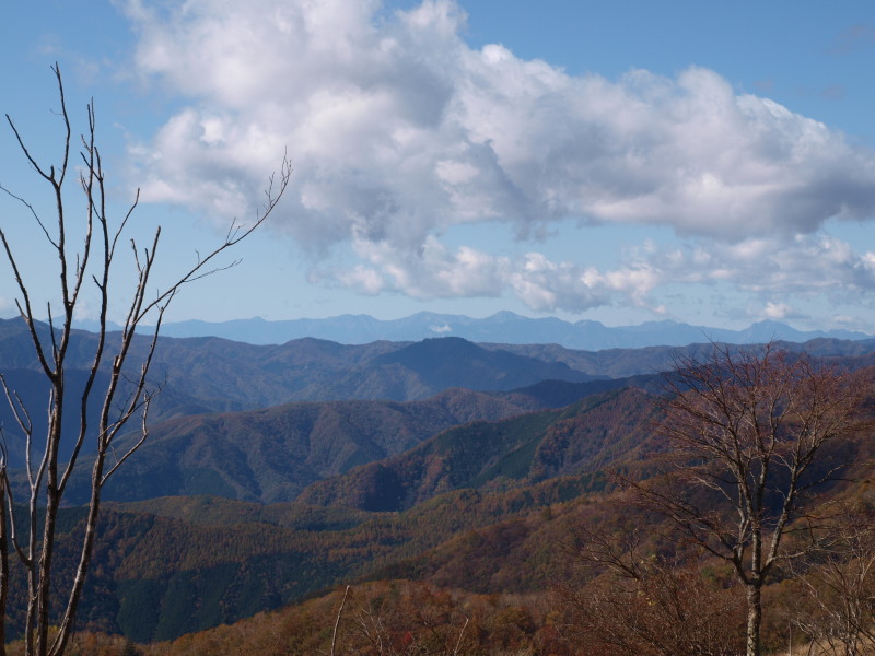 10:38 丹沢の山々。手前の尾根は下山ルート。