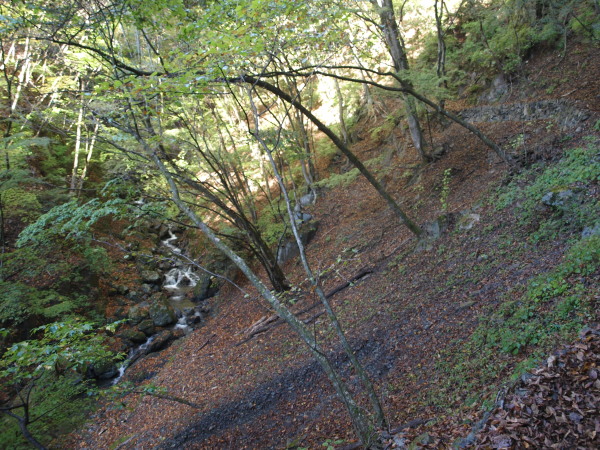 8:19 沢の音を聴きながら、しばらく歩くとだんだん沢が近くなってきます。