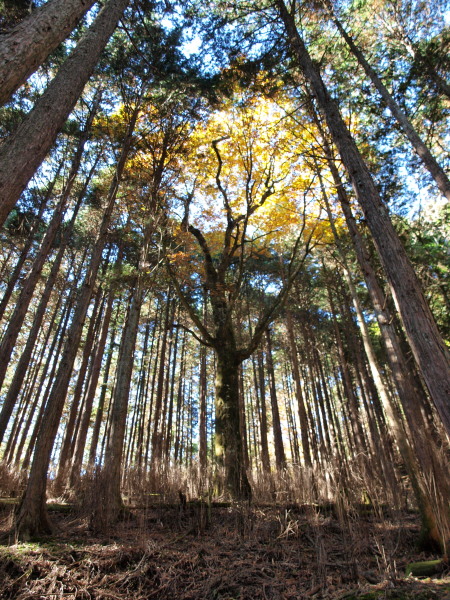 この場所は東側は植林帯ですが、西側は雑木林です。