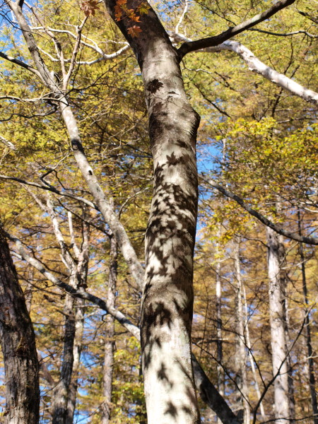 10:04 幹にもみじの影。