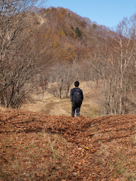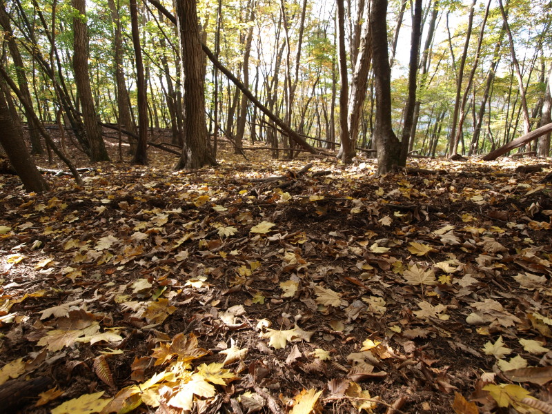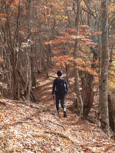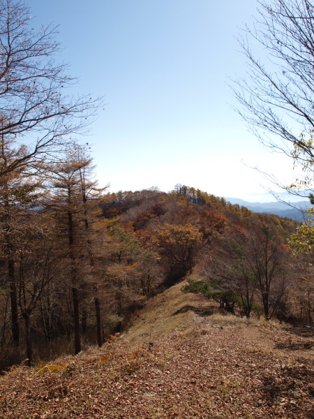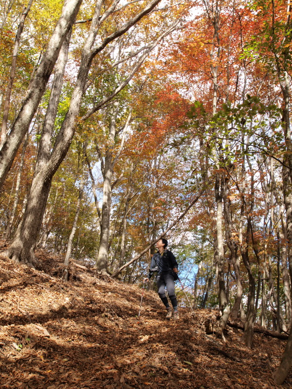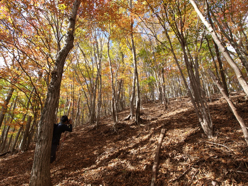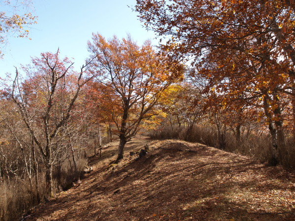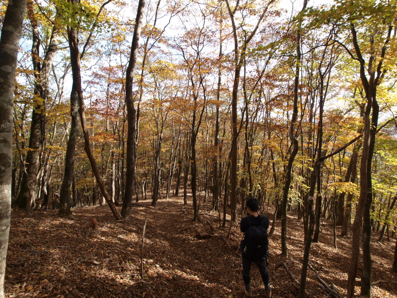 13:24 緩やかな尾根。黄葉、紅葉の中をず〜っと歩きます。