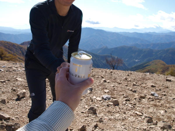 今日の山歩きにノンアルコールで乾杯。