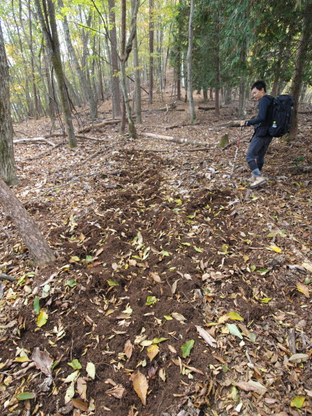 14:02 何者かが掘った跡?