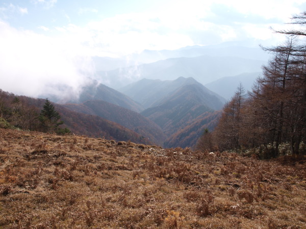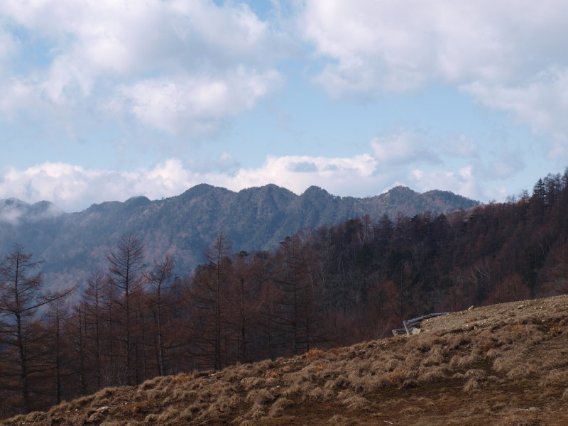 左奥は国師ヶ岳、右奥の真ん中が甲武信ヶ岳。
