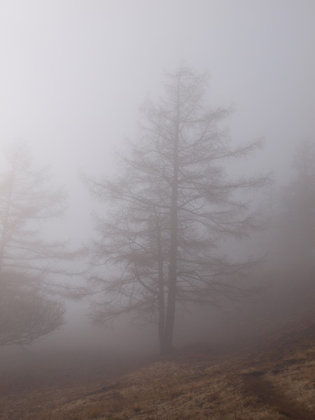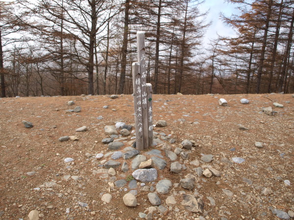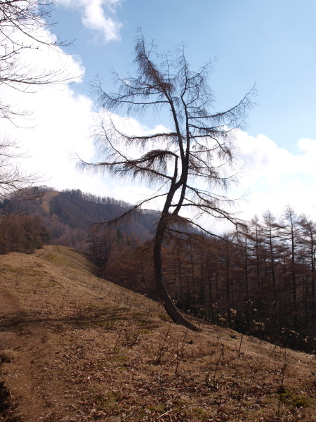 七ツ石山山頂と曲線がうつくしいカラマツ。
