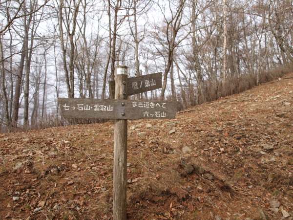T字路で右が巻き道・峰谷方面、左が高丸山方面。