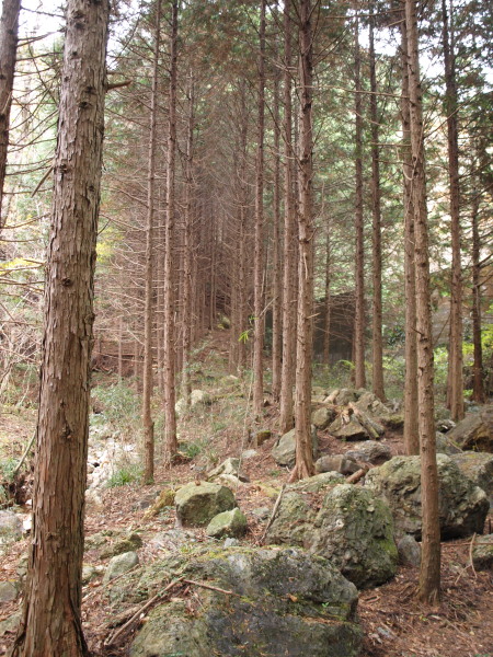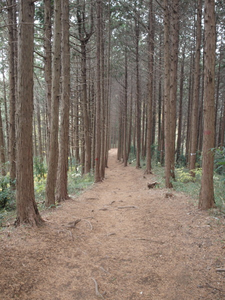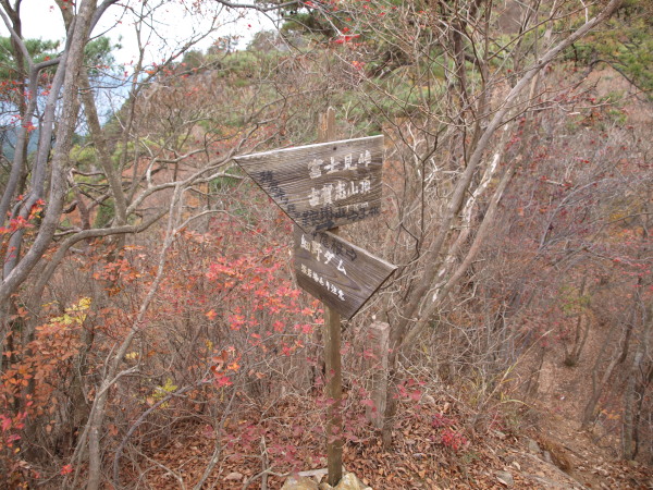 右上には車の通れる林道がありますが、そちらを歩くと北コース、中尾根コースには行けません。