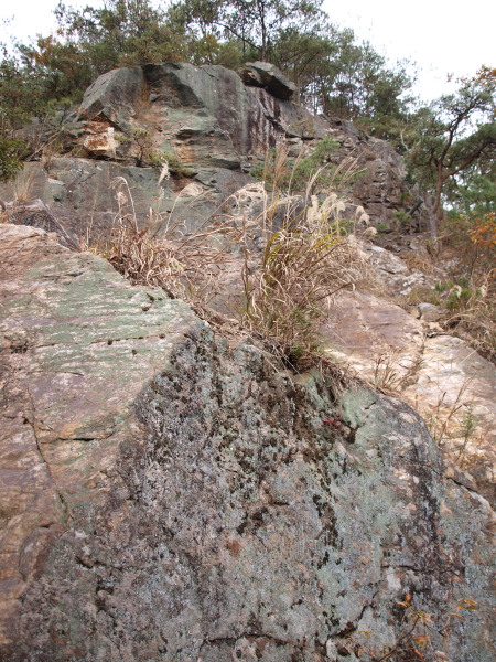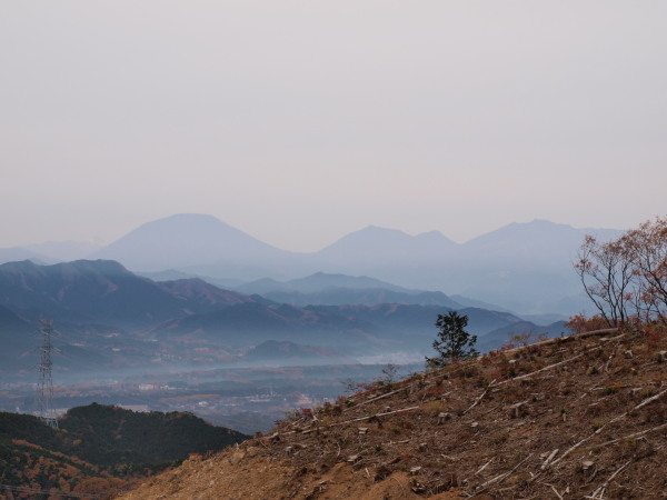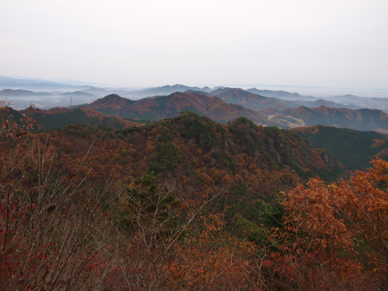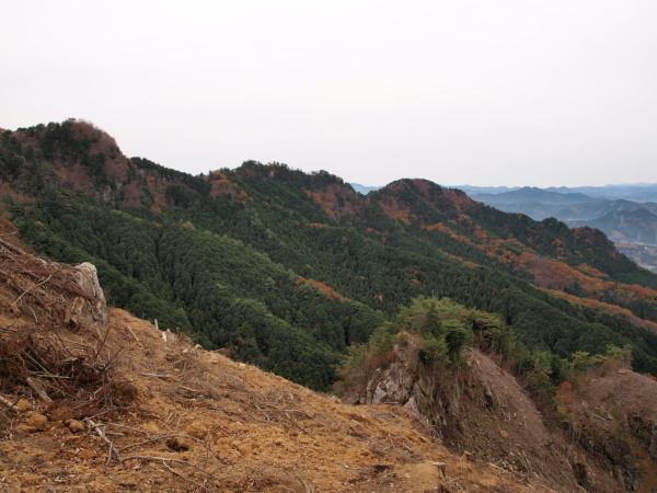 向うの尾根は古賀志山から続く御岳山、赤岩山の稜線。